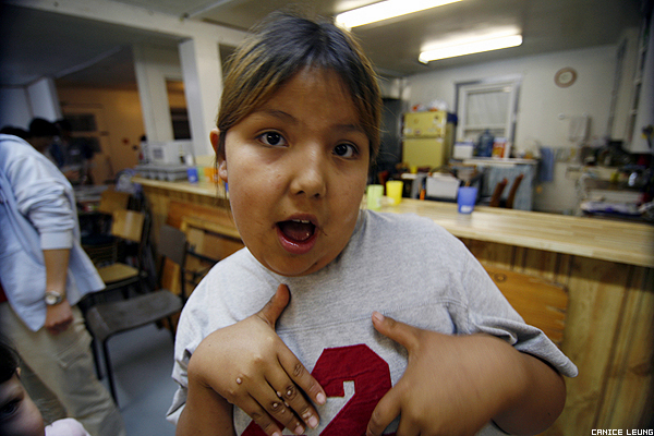 Juani, 2, 3, MySpace pose! This is the first night of the camp. She got a hold of some masking tape and made me write out for her “Canice is my best friend” and then stuck it to her shirt.