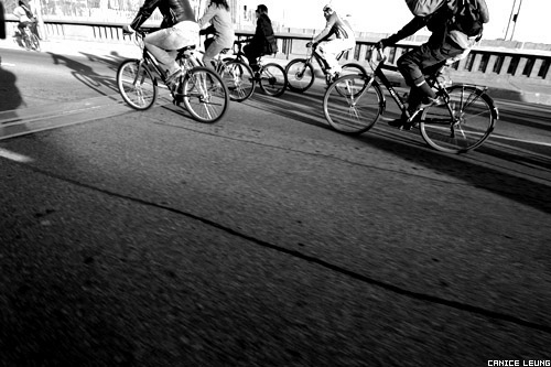 In celebration of spring (aka biking weather) and in complete, utterly aghast ire at how dangerous and oblivious drivers in downtown Toronto are, I decided to join the masses for Critical Mass. It happens on the last Friday of every month, a spontaneous, unorganized gathering of cyclists who ride around the city in huge packs between 100-200 people. Effectively, they cut off an entire direction of traffic and make their presence known on roads where they otherwise are subjected to a lot of danger from motorists.